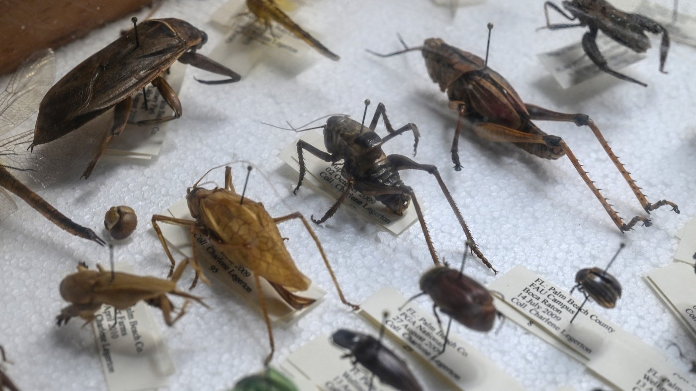 Samples of insects that agricultural specialists look for when inspecting flowers for harmful pests are seen at Miami International Airport in Miami, Florida, on February 7, 2024.