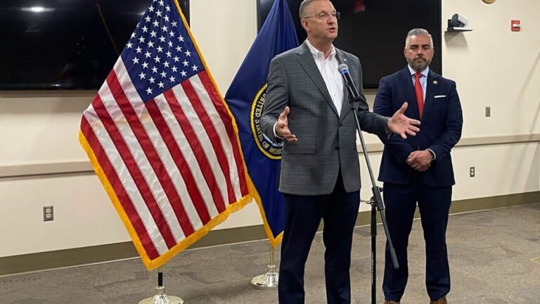 Secretary of Veterans Affairs Doug Collins and Rep. Juan Ciscomani of Arizona at the Tucson VA Medical Center on April 28.