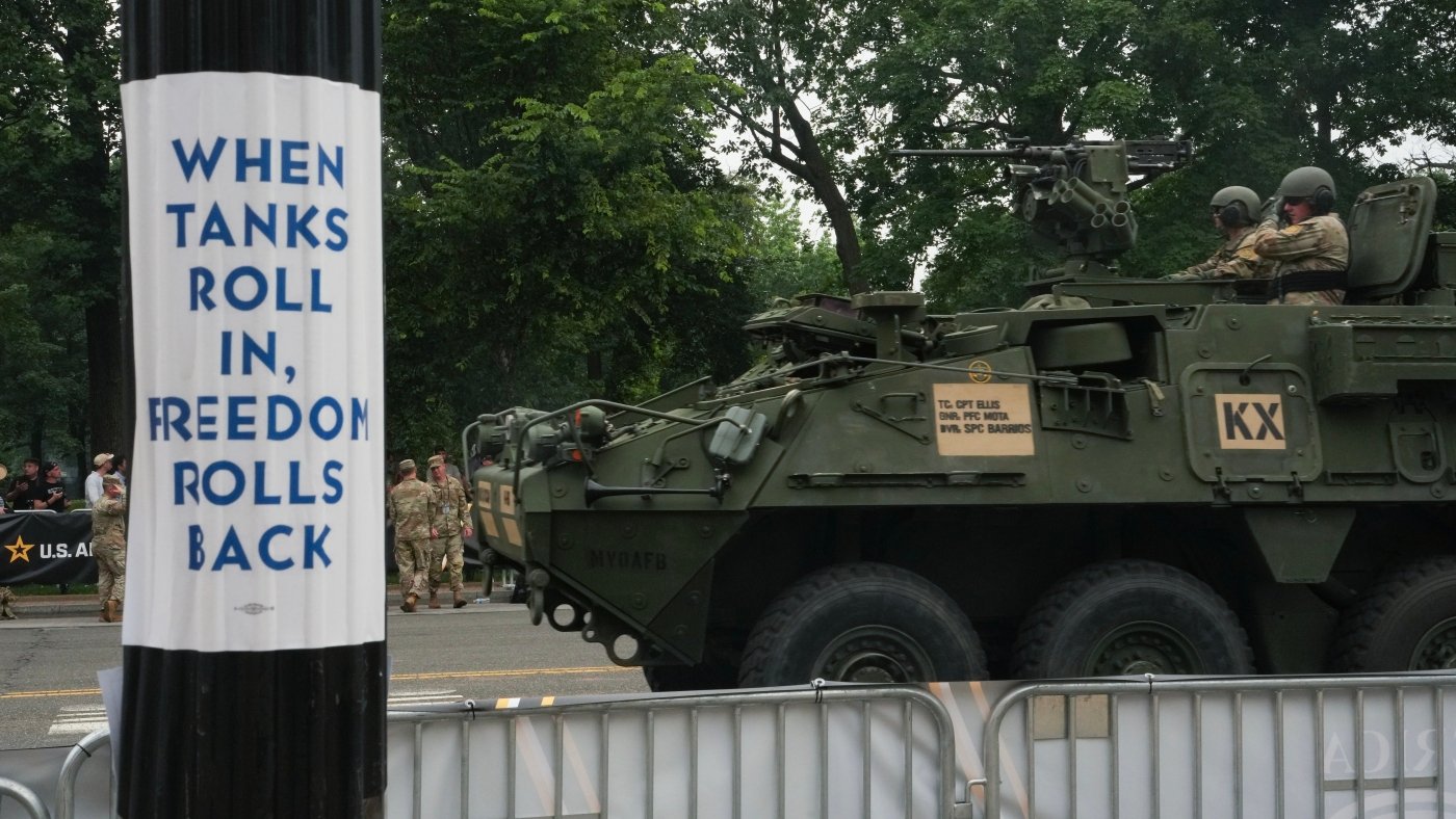 As the Trump administration geared up for the parade filled with tanks and armored personnel carriers rolling through the nation’s capital, people in dozens of cities across the country protested the event as a politicization of the armed forces by a would-be autocrat.
