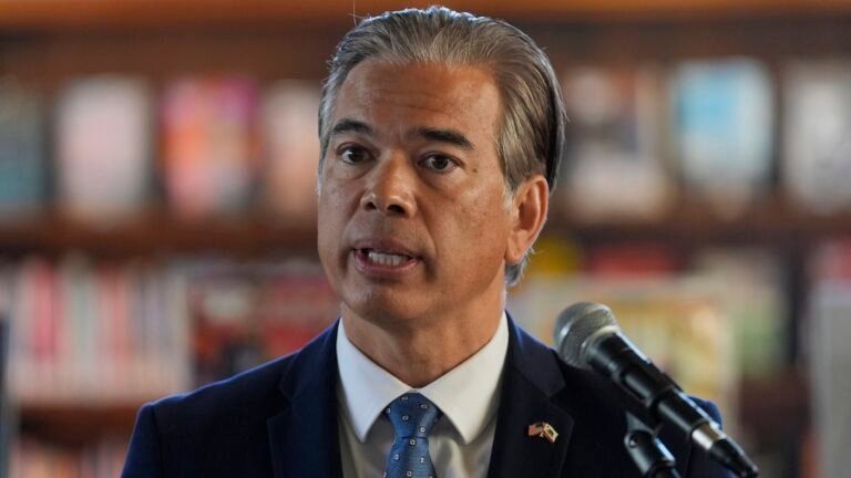 California Attorney General Rob Bonta at a news conference in San Francisco on Dec. 4, 2024. Bonta is leading 20 state attorneys general in a lawsuit seeking to block federal health officials from further sharing Medicaid data and DHS from using it for immigration enforcement.
