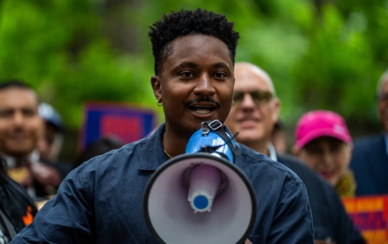 New York City Council member Chi Ossé speaks at a rally in Brooklyn on May 24, 2025.