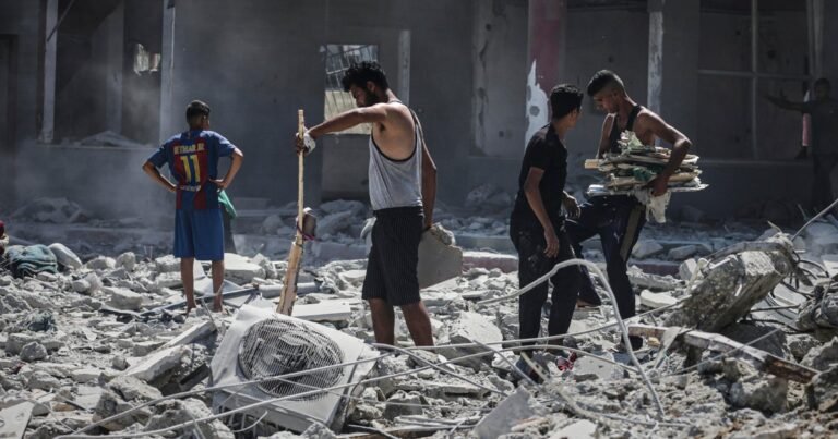 Israeli forces have struck humanitarian areas throughout the war, including Muwasi, which they previously declared a safe zone, according to Gaza’s Health Ministry.