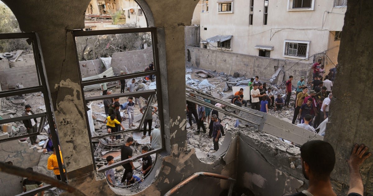 The strikes Saturday morning demolished a house in Gaza City’s Tufah neighborhood, killing at least 11 people, more than half of them women and children, according to Al-Ahly Hospital, where the bodies were brought. Four other people were killed when an airstrike hit their homes in the Shati refugee camp, according to Shifa Hospital. Six other Palestinians were killed by Israeli gunfire while seeking aid in southern and central Gaza, according to the Nasser and Al Awda hospitals.