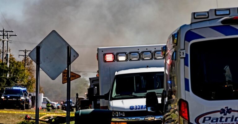 Crews in white coveralls and hard hats searched through what remained of the church on Monday morning. A silver pickup truck with two American flags in the back remained where it had smashed into the front brick wall near a sign that says “visitors welcome.”