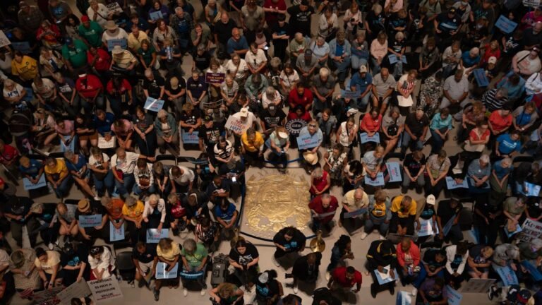 Thousands gather to protest the Missouri legislature’s efforts to redraw congressional maps to favor the GOP and amend the initiative petition process on Wednesday, Sept. 10, 2025, at the state Capitol in Jefferson City.