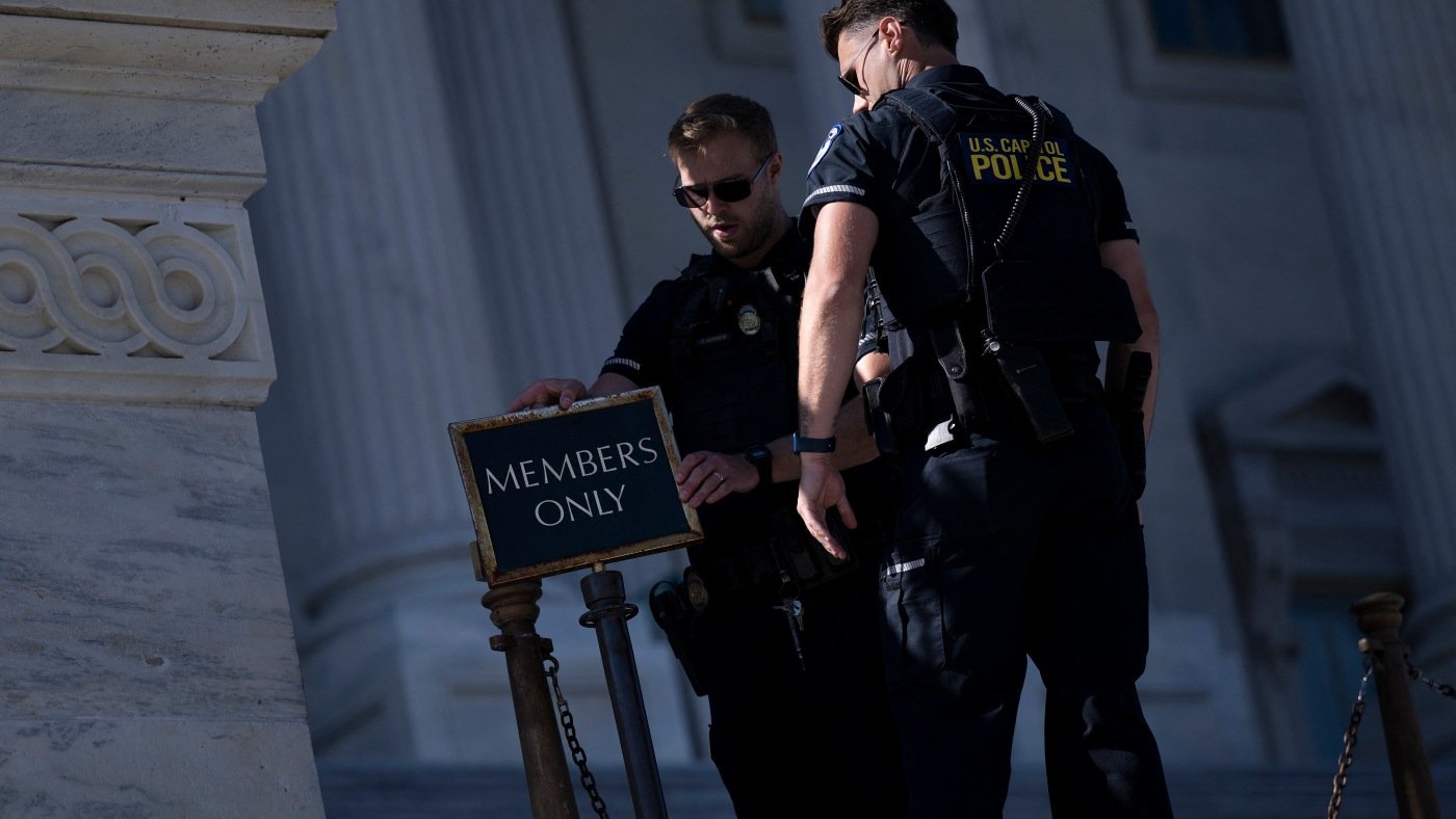U.S. Capitol Police close an entrance to the Capitol as the federal government continued its shutdown on Oct. 9. Because of the shutdown, officers missed their first full paycheck Oct. 10.