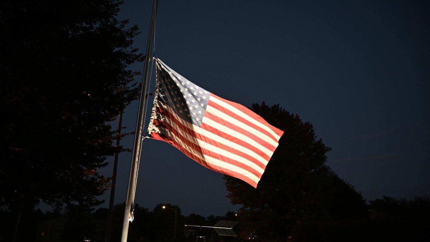 U.S. flags fly at half staff following the assassination of conservative commentator Charlie Kirk at Utah Valley University on Sept. 10 in Chicago.