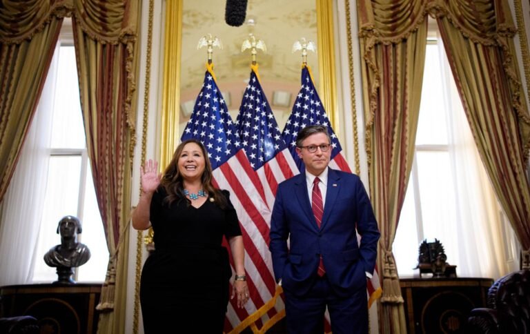 After waiting 50 days to be sworn in as an Arizona Congress member, Representative Adelita Grijalva wasted no time playing nice with GOP House Speaker Mike Johnson. Asked by a reporter why there was such a long wait after her special election (to fill her late father Raul Grijalva’s seat), she smiled demurely, said, “It’s not my question”—and pointed to Johnson. “Look, I really like this lady,” Johnson cooed. Grijalva did not return the compliment. In brief remarks to her colleagues, she blasted the seven-week delay as an “abuse of power” by Johnson. “One individual should not be able to unilaterally obstruct the swearing-in of a duly elected member of Congress for political reasons.”